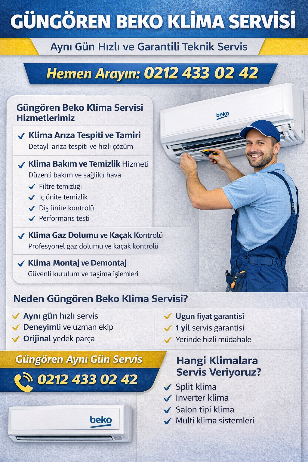 GÜNGÖREN BEKO KLİMA SERVİSİ Aynı Gün Hızlı ve Garantili Teknik Servis Güngören Beko klima servisi olarak, klima arızalarınıza hızlı, profesyonel ve kalıcı çözümler sunuyoruz. Özellikle yaz aylarında klimanızın düzgün çalışması büyük önem taşır. Bu nedenle deneyimli teknik ekibimizle aynı gün servis hizmeti Read More