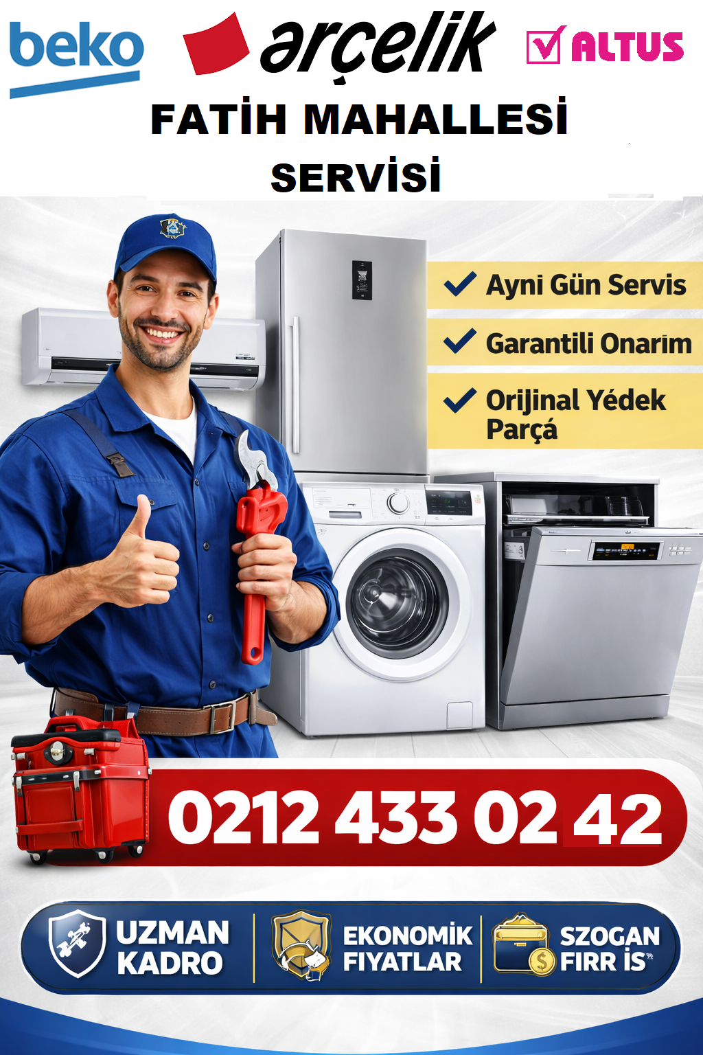 Arızalı cihazınız için hemen 0212 433 02 42 numaralı telefonu arayın. Profesyonel ekibimiz cihazınıza en uygun çözümü hızlıca sunar.